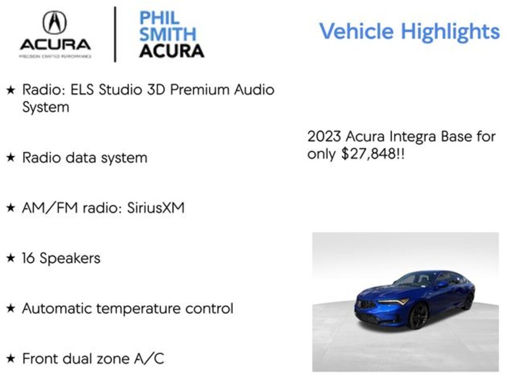 B-621p 2023 Acura Integra A-Spec Tech Package 1.5L I4 DOHC 16V CVT FWD