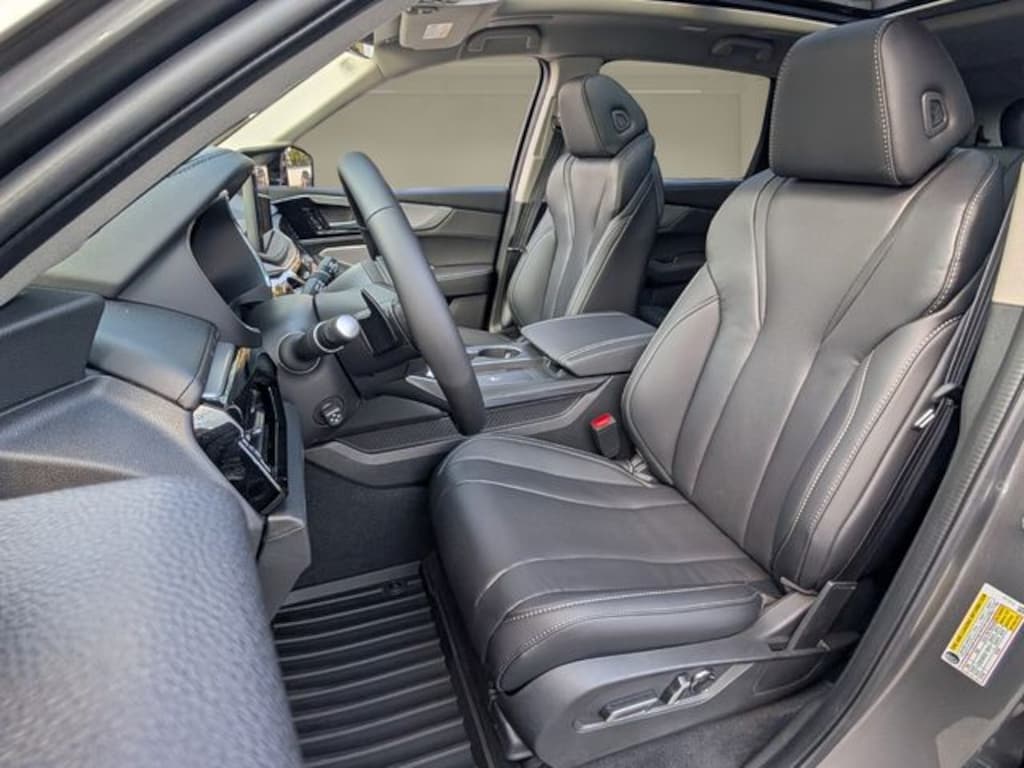 Black Leather, 19 Speakers, 3rd row seats: split-bench, 4-Wheel Disc Brakes, ABS brakes, Air Conditioning, Alloy wheels, AM/FM radio, Anti-whiplash front head restraints, Apple CarPlay/Android Auto, Audio memory, Auto High-beam Headlights, Auto tilt-away steering wheel, Auto-dimming Rear-View mirror, Automatic temperature control, Brake assist, Bumpers: body-color, Compass, Delay-off headlights, Driver door bin, Driver vanity mirror, Dual front impact airbags, Dual front side impact airbags, Electronic Stability Control, Emergency communication system: AcuraLink, Exterior Parking Camera Rear, Four wheel independent suspension, Front anti-roll bar, Front Bucket Seats, Front Center Armrest, Front dual zone A/C, Front reading lights, Fully automatic headlights, Garage door transmitter: HomeLink, Heated door mirrors, Heated front seats, Heated Front Sport Seats, HVAC memory, Illuminated entry, Knee airbag, Lane departure: Lane Keeping Assist System (LKAS) active, Leather steering wheel, Low tire pressure warning, Memory seat, Navigation system: Google built-in (3-Years Unlimited Data Plan for In-Vehicle Apps), Occupant sensing airbag, Outside temperature display, Overhead airbag, Overhead console, Panic alarm, Passenger door bin, Passenger vanity mirror, Perforated Premium Milano Leather Trimmed Seats, Power door mirrors, Power driver seat, Power Liftgate, Power moonroof, Power passenger seat, Power steering, Power windows, Premium audio system: Acura/ELS Surround, Radio data system, Radio: Bang & Olufsen Premium Audio System, Rain sensing wipers, Rear air conditioning, Rear anti-roll bar, Rear reading lights, Rear seat center armrest, Rear window defroster, Rear window wiper, Remote keyless entry, Security system, Speed control, Speed-sensing steering, Speed-Sensitive Wipers, Split folding rear seat, Spoiler, Steering wheel memory, Steering wheel mounted audio controls, Tachometer, Telescoping steering wheel, Tilt steering wheel, Traction control, Trip computer, Turn signal indicator mirrors, Variably intermittent wipers, Wheels: 20" x 9J Aluminum Alloy, Black Leather. 2026 Acura MDX Technology Package Liquid Carbon Metallic 3.5L V6 SOHC i-VTEC 24V FWD 10-Speed Automatic
