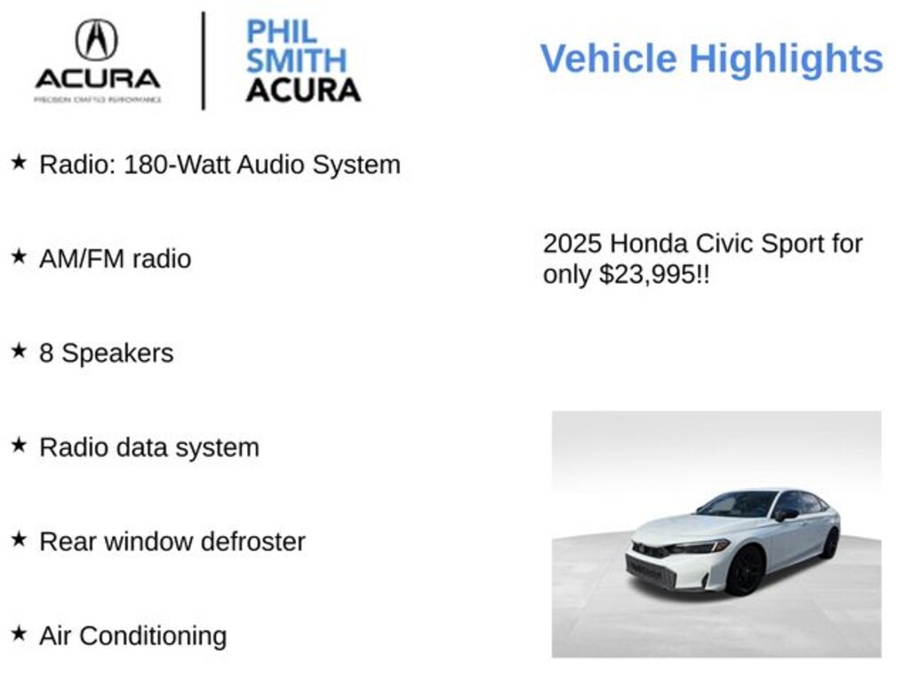 View this 2025 Honda Civic Sedan Sport for sale at Phil Smith Acura in Pompano Beach.