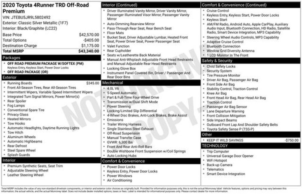 Used 2020 Toyota 4Runner SUV TRD Off-Road Premium